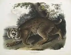 - (US) A bobcat (Lynx rufus) or other similar New World species of lynx.