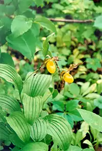 - Cypripedium parviflorum, a type of lady's slipper orchid native to North America.