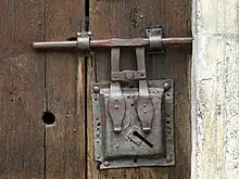 - (construction) bar, bolt (sliding pin or bar in a lock or latch mechanism)