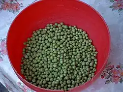 - pea (the grain of these plants, especially Pisum sativum)