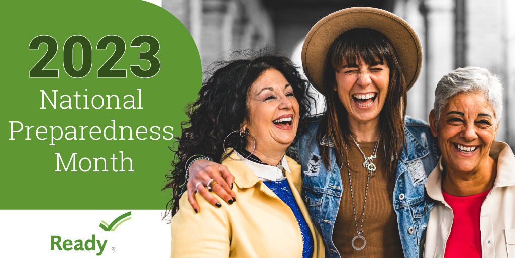 Social media graphics for the 2023 National Preparedness Month (NPM) in English and Spanish.